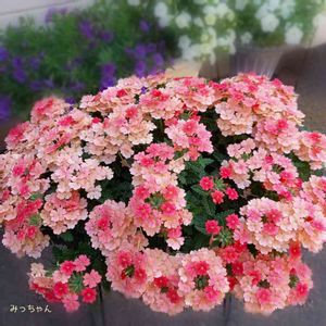 ✴私の推しのPW✴ 2番目推しは、 「PW スーパーベナ ピーチメルバ🍑」です。 4月のアンバサダーで頂き、初めて育て、満開の姿に、すっかりお気に入りのお花になりました。 見事な花付きに、可愛い~ピンク色💗 花色の変化も楽しめ、 サーモンピンク➡️ピンク➡️ベージュと、変化します。 見てみたい~😍と思う方、来年、お勧めですよ👍