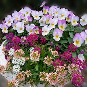 寄せ植え✴ 園芸店の、安~いビオラに、 ミックスアリッサムを合わせました。 単純な寄せ植えだけど、華やかぁ~💗