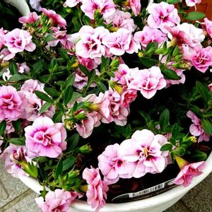 八重咲きカリブラコア ペティ サクラローズ しだれる系のようで流れおちる枝振り🍀 お花のグラデーションピンクにキュンときます🤤🍑❤️ 花びらがシッカリ薔薇のような八重なところが豪華でお気に入り❤️