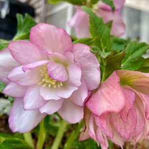 おはようございます クリスマスローズダブル 右の初めに咲いた花に比べて明るい色に なってきました 🏷19日はピンクの日! 参加させて下さい