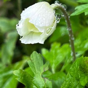 アネモネ・シルベストリスがまた咲きそうですꕤ 雫を纏って美し過ぎます(ღ˘⌣˘ღ)。o♡ でも…今の時期に咲いてしまって大丈夫なの? 来年は花期が4月〜6月の通常モードになるの(•'-'•)?