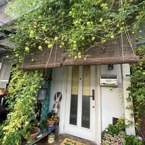 涼しくなりました 我が家の玄関先が風船かずらで森のようになってる😅