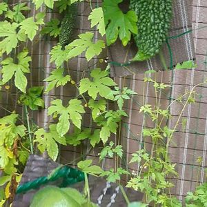 おはようございます✨ 我が家のグリーンカーテン 少しずつ育ってきた❤ 真西の庭、夏の太陽は 痛いです。 サンシェード+グリーン カーテンでやっと凌いで いますよ😅