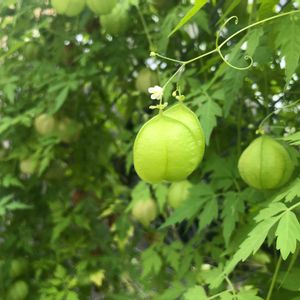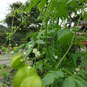 風船カズラ まだ青い実がなってました。 小さな白いお花も 可愛かったです。 散歩道にて。💓