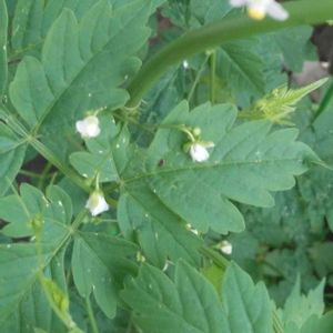 以前、ヒメシュウレイをもらっていただいた(そう、もらっていただいたのに)お礼に風船かずらの種がはいっていました。 ありがとう(*・∀・*) その風船かずらに花が咲き始めました。 どんどん咲いて、あっという間に風船ができそうです。 つるはどんどんのびてもう捕まるところがなくゆらゆらしております。 とても、元気です(*>∀<*)