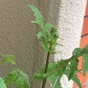 雨続きですね☔️、早く植物たちにたっぷり日差しを浴びさせてあげたいです☀️ 雑多プランター1番の長身植物は、どうやらノゲシという草花みたいです、蕾がてっぺんにつきました👏開花が楽しみです♪