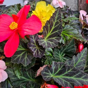🏷️月曜日は元気色の花 近所のレストランで咲いてたベゴニア