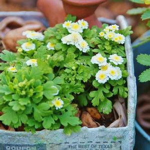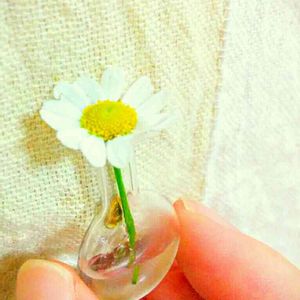むかーーし買った指サイズの小さな花瓶💓折れてしまったマトリカリアを入れてみました♪ ピンでソファーにくっついてます(●´∀`●)