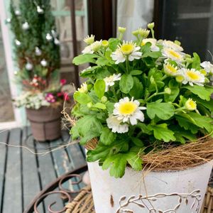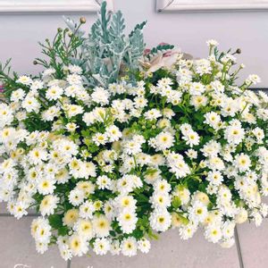 【 フランス小菊 / マトリカリア 】 昨年の11月に購入した時よりも10倍以上大きくなりました🌱寄せ植えをしているので、植木鉢がパンパンです💦 挿し芽も成功して、種まきでも増やせます。 涼しい場所で夏越しにもチャレンジです🎵