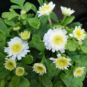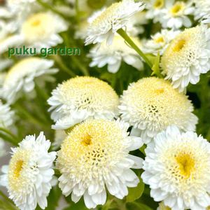 6月11日 今日のお花『マトリカリア』です。 【マトリカリア(フランス小菊、ナツシロギク)】 南東ヨーロッパ原産、キク科多年草(二年草扱い) 花期になると、多数分枝した茎の頂部に花径1~2㎝程度の頭花を咲かせる。 頭花は花弁のように見える舌状花と中心部分の筒状花からなる集合花。 基本種は花の中心が黄色くて白い花びらを持つ一重咲きで、八重咲きやポンポン咲きなども多く流通している。 茎が細かく分かれるので、株を覆うように花を咲かせる。 ヨーロッパなどでは古くから薬用のハーブとして育てられてきた。 草丈:15~100cm程度、開花期:5月~7月 花色:白,黄 ガーデンマルシェ防府にて