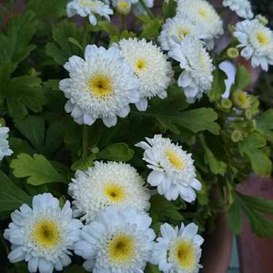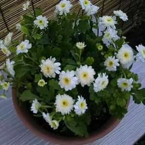 こんばんは⭐️ 今日はとってもよいお天気🌞でしたね❣️ フランス小菊❀︎マトリカリア🤍 テラコッタの中でとっても 可愛く咲いています🥰 〜今朝のお庭より〜
