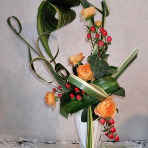 今日のアレンジメント教室のお花🍥 暑さ☀️を忘れられた一時でした🎵