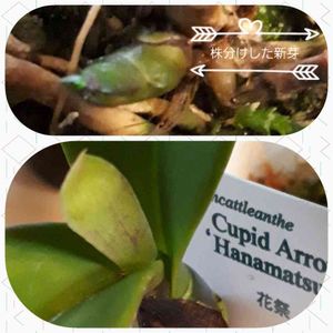 カトレア🎵花祭 春の蘭展で購入✨ 上は株分けした花祭~新芽出てます🎵 下はシース出来てますが〰 色があぶない❔😥