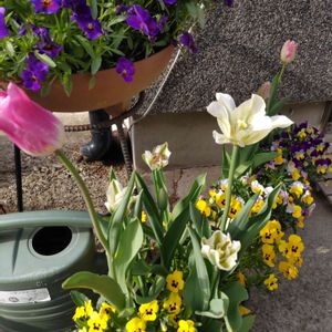 こんにちは!☀ 小さいチューリップ! ここまで咲きました👍 見元さんのビオラも 極寒を外で越しました😆