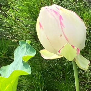 ハス「一天四海」6番花2日目 開き始め 一天四海はホントに綺麗な斑が入ります♪ (*´ω`*)