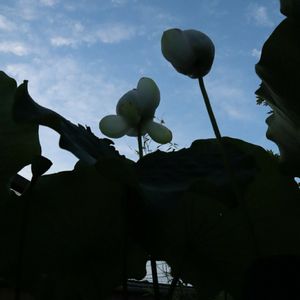 ハス「一天四海」1番花3日目と待機中のツボミ♪ツボミは高さ2m位あるので脚立に乗って撮影してますが、住宅街なんでなんか朝から目立ちますねw (; ・`ω・´)