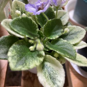 こんにちは😊 先日可愛いミニセントポーリアをゲットしました(*˘︶˘*)✨ ①フリルのお花も斑入りの葉っぱも綺麗です💚 ②白に少し紫が入った八重咲きです💜 セントポーリアは育て方が難しいですが、頑張って育てます(*•̀ㅂ•́)و✧ 🏷可憐な火曜日