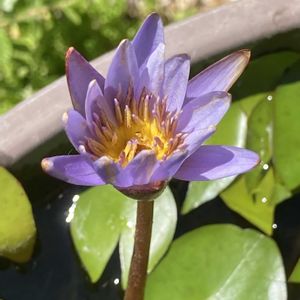 今季初の熱帯スイレン💜 植え替えしなかったからお花小さめ😅 黄色のゼフィランサス˖*♬೨̣̥ 春に植え替えしたミニセントポーリアのお花が咲きました˖*♬೨̣̥ 鉢のサイズアップや土の違いが心配でしたが新しい環境に慣れてくれたようで嬉しいです💜 今日の蓮はちょうど散る前の子と新しく咲く前の子が紅白の蕾のようでした˖*♬೨̣̥ この後白い子はハラハラと散っていきました🪷