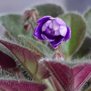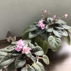 向かい合って蕾をつけているミニセントポーリア、かわいい🩷