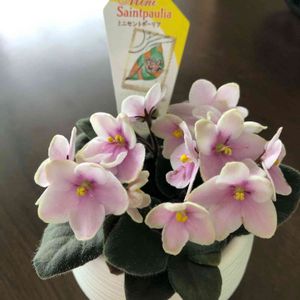 お友達から、頂いた ミニセントポーリア 紫とピンク 小花好きには、たまらない可愛さ☺️💞 ありがたいことです❣️ 感謝❣️感謝❣️😆 キッチンの出窓に、置いてます😌🍀 写真撮るのに、テーブルにのせました〜
