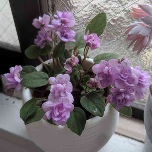 いつもはテーブルに置いているセントポーリア。今日は薄暗いので窓辺で撮影しました。元気に咲いてくれています(●︎´▽︎`●︎)