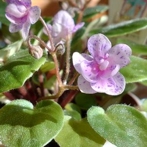 とても可愛いミニセントポーリアを見つけました。ベル咲きで、小さな花が控えめに咲いているのが可憐です。鉢のサイズは2号。直径6センチです。葉っぱも長さ1.5センチくらい。ミニの中でも小さい方です。 ピンクと紫、両方買ってしまいました。