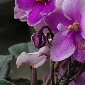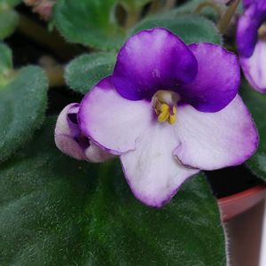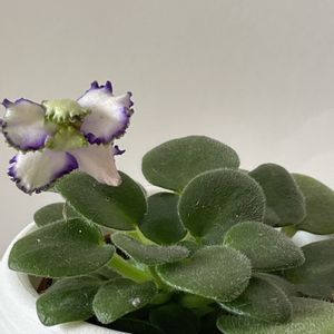 一昨日お迎えしたミニセントポーリア 三種類。やっぱり可愛い💜🤍💜 白の花弁、花弁の根元が紫 紫に緑色のふりふり縁取り 単色紫色、葉っぱ🌱が斑入り