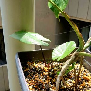 モンステラ鉢から何やら出てきたから何かと思ったら、つるっぱげになってダメ元で植えたブラックステムだった😍😍😍