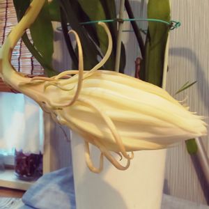 今晩は 月下美人 今咲いています、玄関がとてもいい香りです、?暑いので香りでムンムンです❣️ ちょつと早いですが、おやすみなさい😪💤