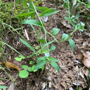 白い花がぽつぽつと咲いてます😊これは名前がついていて、ムラサキだそうです。初めて出会うお花🤗もっと大きくなって、たくさんの花を見せてください😊