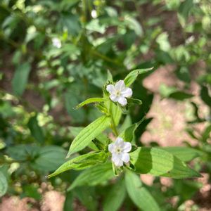 紫 ムラサキ ムラサキ科 ムラサキ属 フナバラソウの近くで まさかの出会いでした! 純白で清楚なお花です 花は直径8㎜位 葉はしっかりして毛に覆われています 根っこの紫根(シコン)は生薬や紫の染料として使われていました 万葉集や源氏物語にも登場するいにしえのお花です