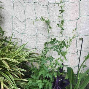 会社の花壇 去年の零れ種からフウセンカズラ🎈がたくさん芽吹いてきたので🌱100均のネットを張ってみたけど、網目が荒すぎてイマイチ😨