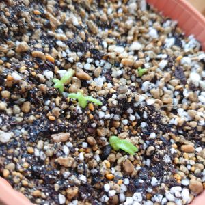 沙地桜 実は一つだけ双葉が不完全になって、片方だけうまく生えて来なかった 原因は不明 他と同じように発芽は自然に任せてたんだけど。 種が原因なのか、 それともたまたま潜んでいた虫に目をつけられ、発育不良か。 それでもそのうち枯れると思ってたから二枚目が生えてきて嬉しい