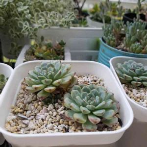 ■Echeveria エケベリア ・Blue Minima ブルーミニマ 2回目の夏越お疲れちゃん♥ 気がついたら増えてました😆 来年は切り離すか…群生だな😉 春秋今は直射日光浴☀ 夏は建物東側で午前中のみ日光浴☀ そろそろ水やりはイジメちゃいます😉