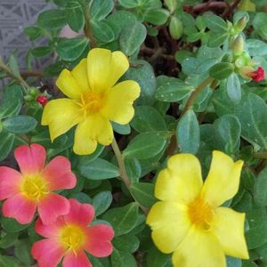 おはようございます😊 ベランダの 💛ポーチュラカ💗 ✂️切り戻ししてから ポツポツ咲いてくれました ✧*。٩(ˊᗜˋ*)و✧*。 可愛いらしい💕