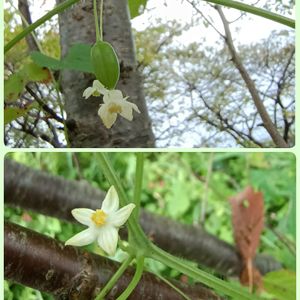 スズメウリ(ウリ科スズメウリ属) 昨年実がなってた桜の木でスズメウリのお花が咲いてました。 上 雌花 下 雄花 枝がじゃまになり、写真撮りにくかったです。 雄花と雌花が見れて良かったです。