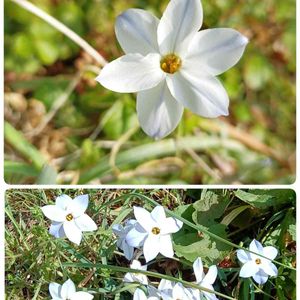 ハナニラ 公園にたくさん咲いていました。 花名の由来 和名の「花韮(ハナニラ)」は、葉にニラ臭があることにちなみます。 なお、食用のニラは別属(ネギ属)になります。 英語では「Spring starflower(春の星形の花)」と呼ばれます。 ハナニラは食べらません。 高さ10〜25cm、花茎3cm。 🏷 白い水曜日♡