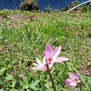 今日のお花 ゼフィランサス、(サフランモドキ) として投稿しましたが、ハブランサスと真理さんに教えていただきました。 公園の池の近くに咲いていました。 遠くに見える池の白いお花は、オオカナダモです。 🏷 ピンクワールドへようこそ
