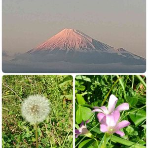 昨日の富士山 雪がたっぷり積もりました。 16時30分撮影 ↙たんぽぽの綿毛 ↘ムラサキカタバミ