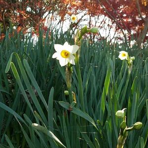 水仙が咲いていました。 色付いたモミジとのコラボ、ステキです。 🏷金曜日の蕾たち