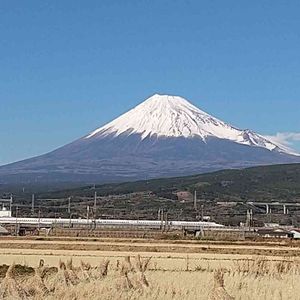 稲刈り後の田んぼと富士山 新幹線が通るのを待って、撮りました。