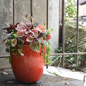 赤い鉢にペペロミアの寄せ植え グリーンギャラリーガーデンズ教室・生徒さん作です。