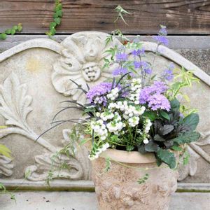 パンジー の寄せ植え パンジー ロニセラ エレモフィラグラブラ コクリュウ シルバーレース