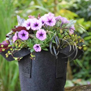 ルーツポーチに寄せ植え。秋のペチュニアは発色が良いです。