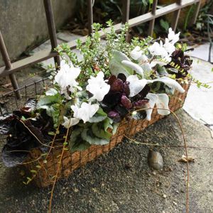 グリーンギャラリーガーデンズ教室でアシスタントをして頂いてconteさんが作った寄せ植えです。 ガーデンシクラメン クランベリー ヘミグラフィス アルテルナタ セネシオ エンジェルウイング