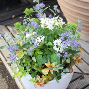 ペンタスとカリオプテリスの寄せ植え 明日は敬老の日ですね。プレゼントにいかがでしょう。