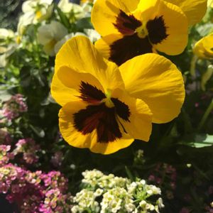 切り戻したアリッサムが復活 パンジーのくまさん顔がかわいいです。