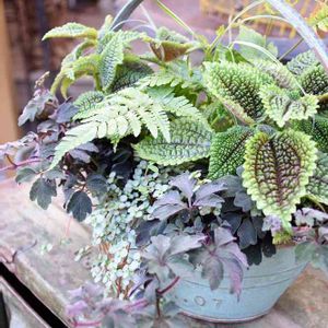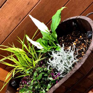 観葉植物の寄せ植え 植える前にバケツに入れてみました。