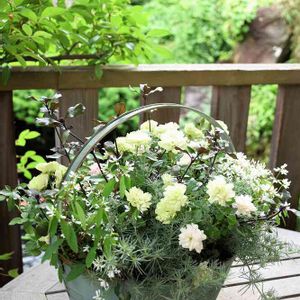 フワフワな寄せ植え 優しい色の植物ばかりで作りました。