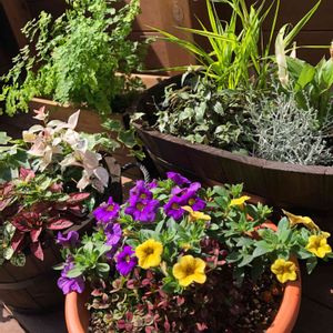 ガーデニング初心者🔰 お天気☀なので ウッドデッキの草花🌷たちが 元気です♬